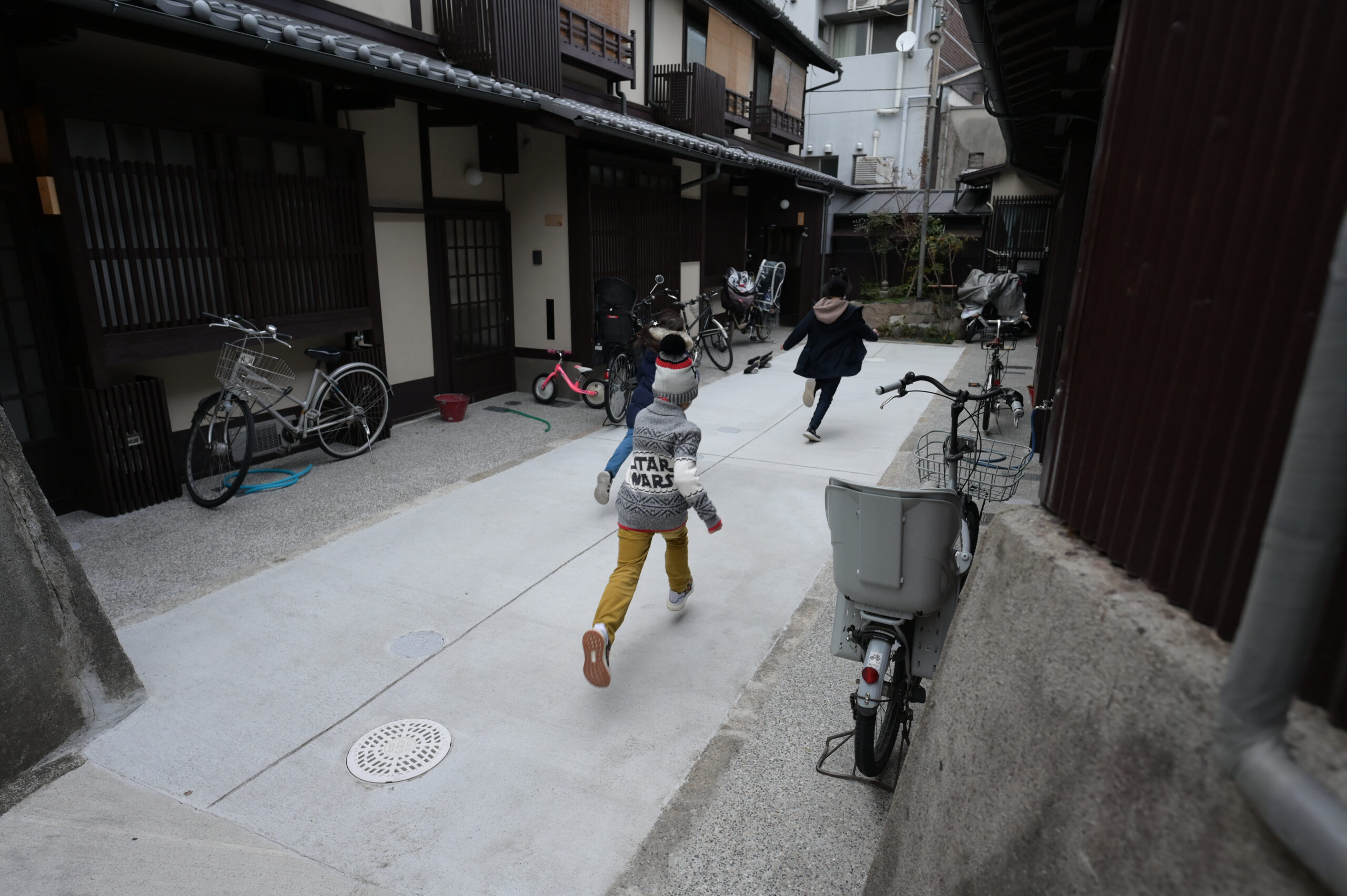 意図されたものです。この新しく整備された五条坂なかにわ路地は、子供たちの遊ぶ姿を見守る
